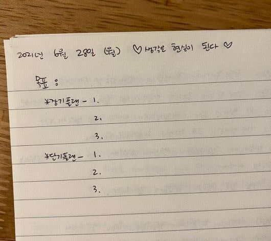 아침마다 목표를 되뇌고 감사일기를 쓰고 있다. 내용은 낯간지러우니 생략했다.