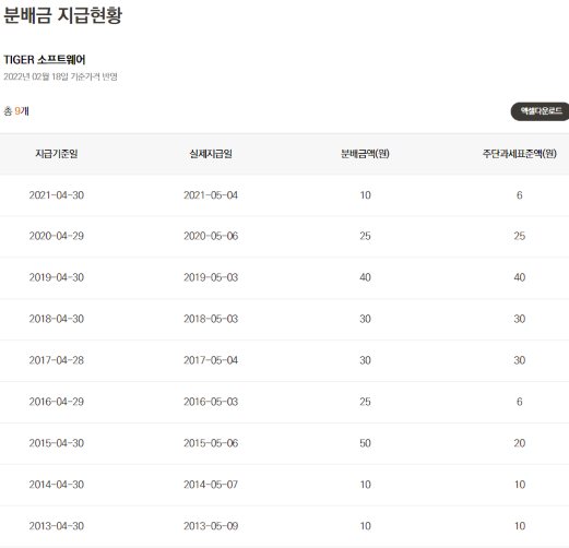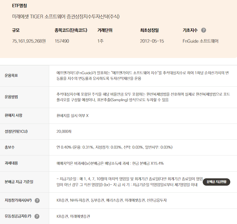 TIGER 소프트웨어 ETF 도 분배금을 지급하는 ETF입니다.