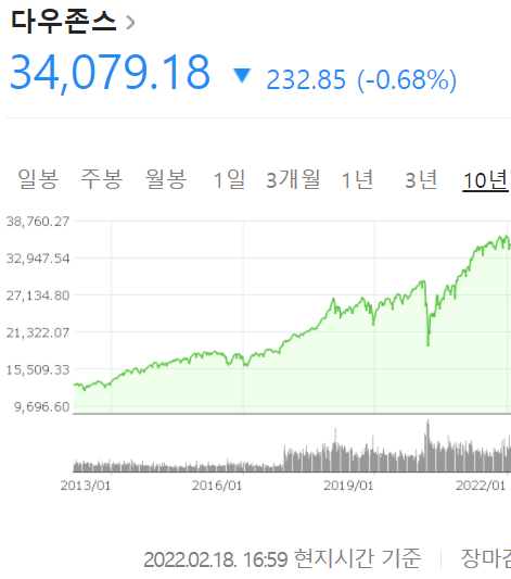 10년간의 다우존스와 코스피 비교를 해 보아도 차이가 있습니다.