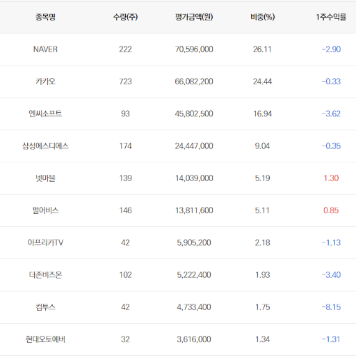 그래서 보다 안정적인 대기업으로 묶인 ETF를 찾아보았고 네이버와 카카오톡을 선택했습니다.