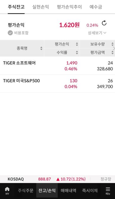 저도 장기적으로 노후 자금을 마련하는 ETF를 매수하려고 하니 조금 더 안정적인 수익이 있는 쪽으로 매수를 하고 싶어서 TIGER 미국 S&P500 ETF를 매입했습니다.